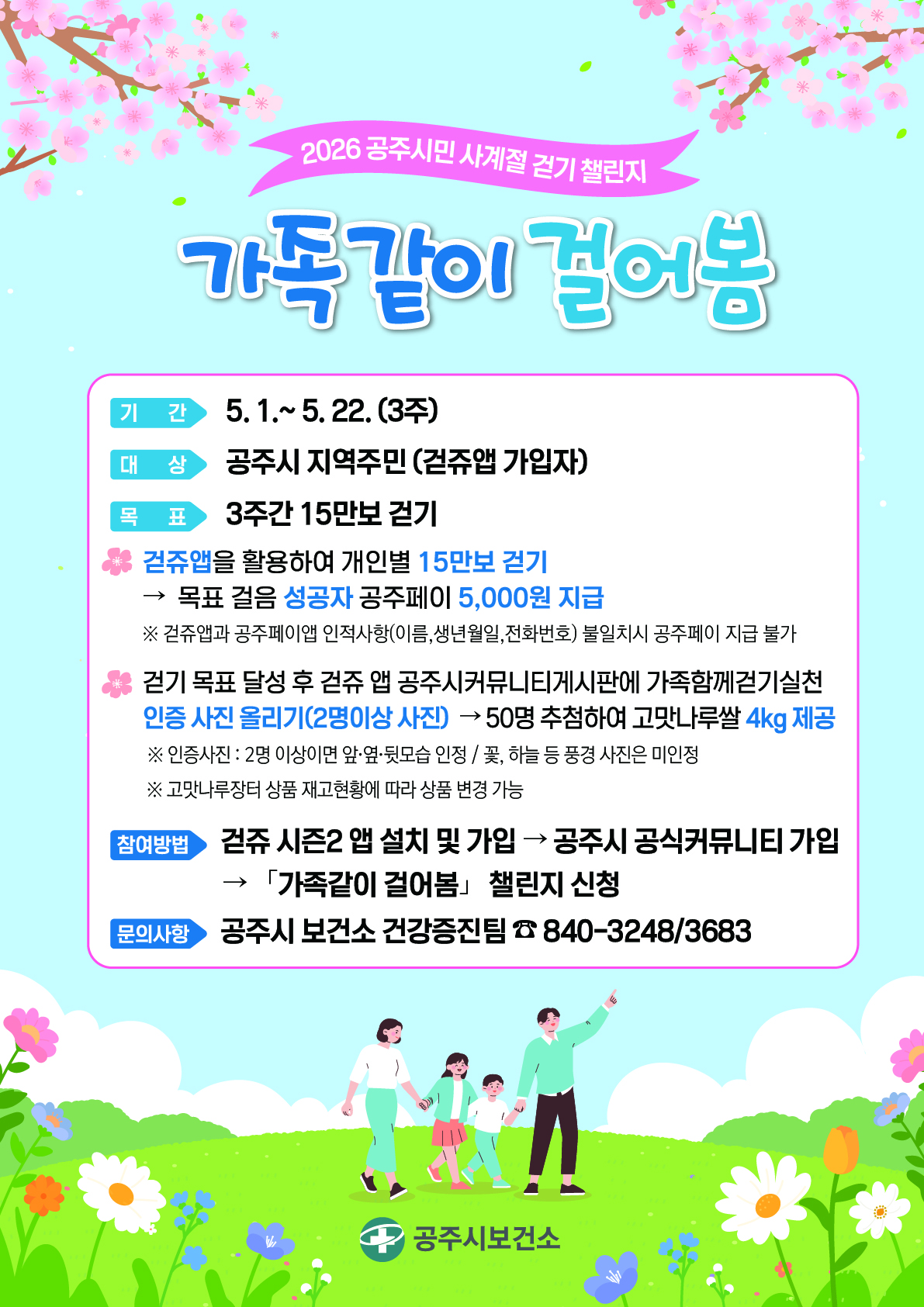 2026년 공주시민 사게절 걷기 챌린지 "가족같이 걸어봄" 운영