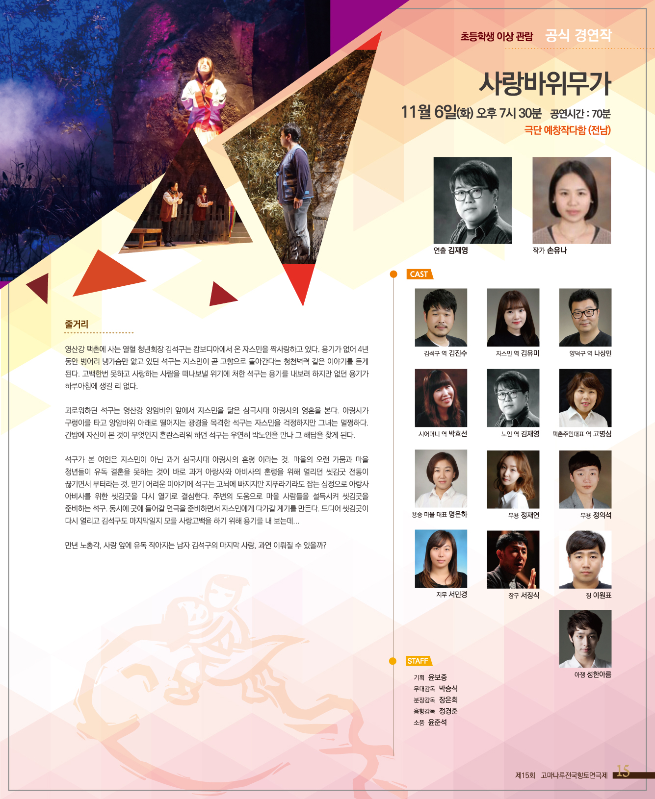 | 5341 | 고마나루전국향토연극제 11.6.(화) / 사랑바위 무가 | 의당면 | 90 | 2018-11-06 | 116(화) 공연작.jpg |