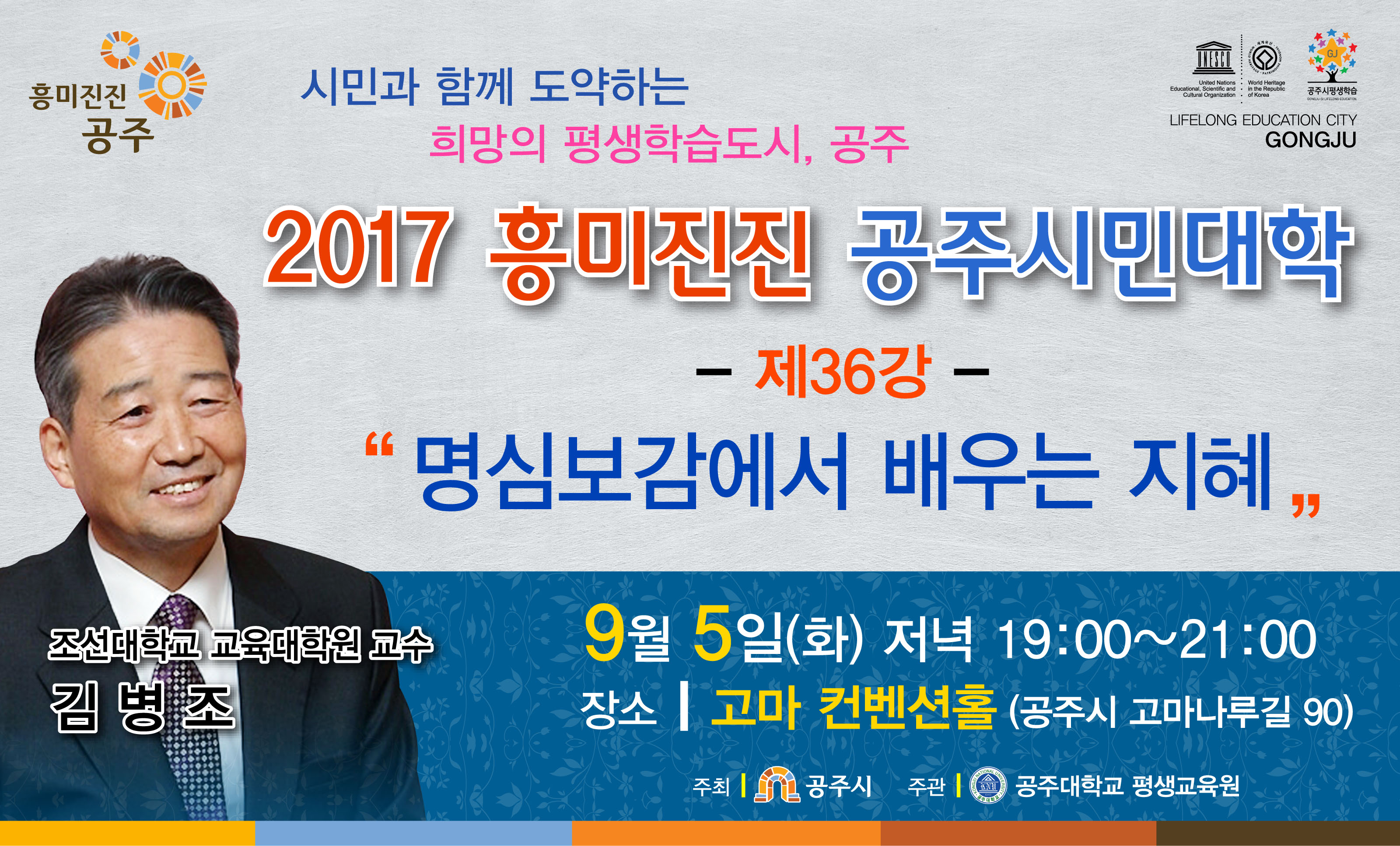 | 4310 | 2017 흥미진진, 공주시민대학 제36강 안내("명심보감에서 배우는 지혜" 김병조 교수) | 탄천면 | 222 | 2017-08-24 | 전단지.jpg |