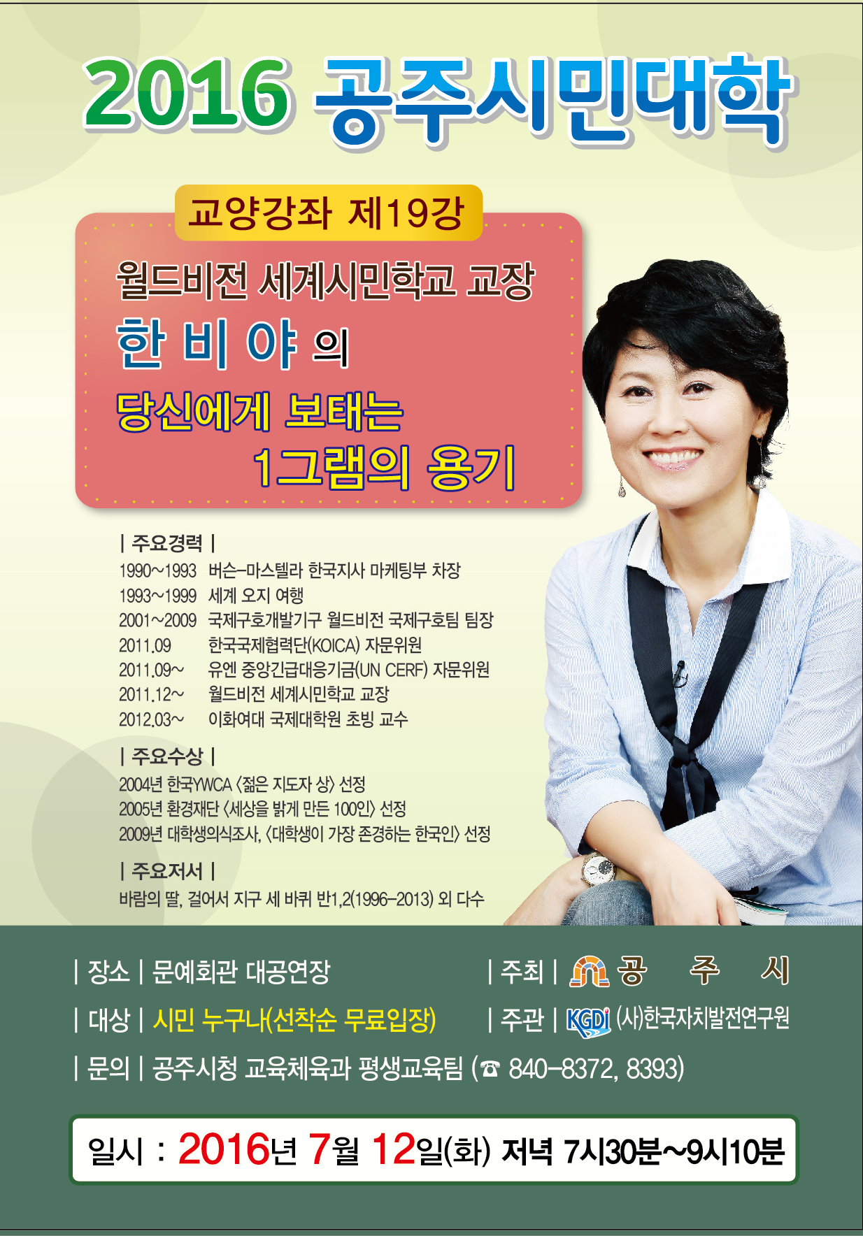 | 3226 | 2016년 흥미진진, 공주시민대학 홍보 | 유구읍 | 643 | 2016-07-01 | 전단지_19강_한비야.jpg |