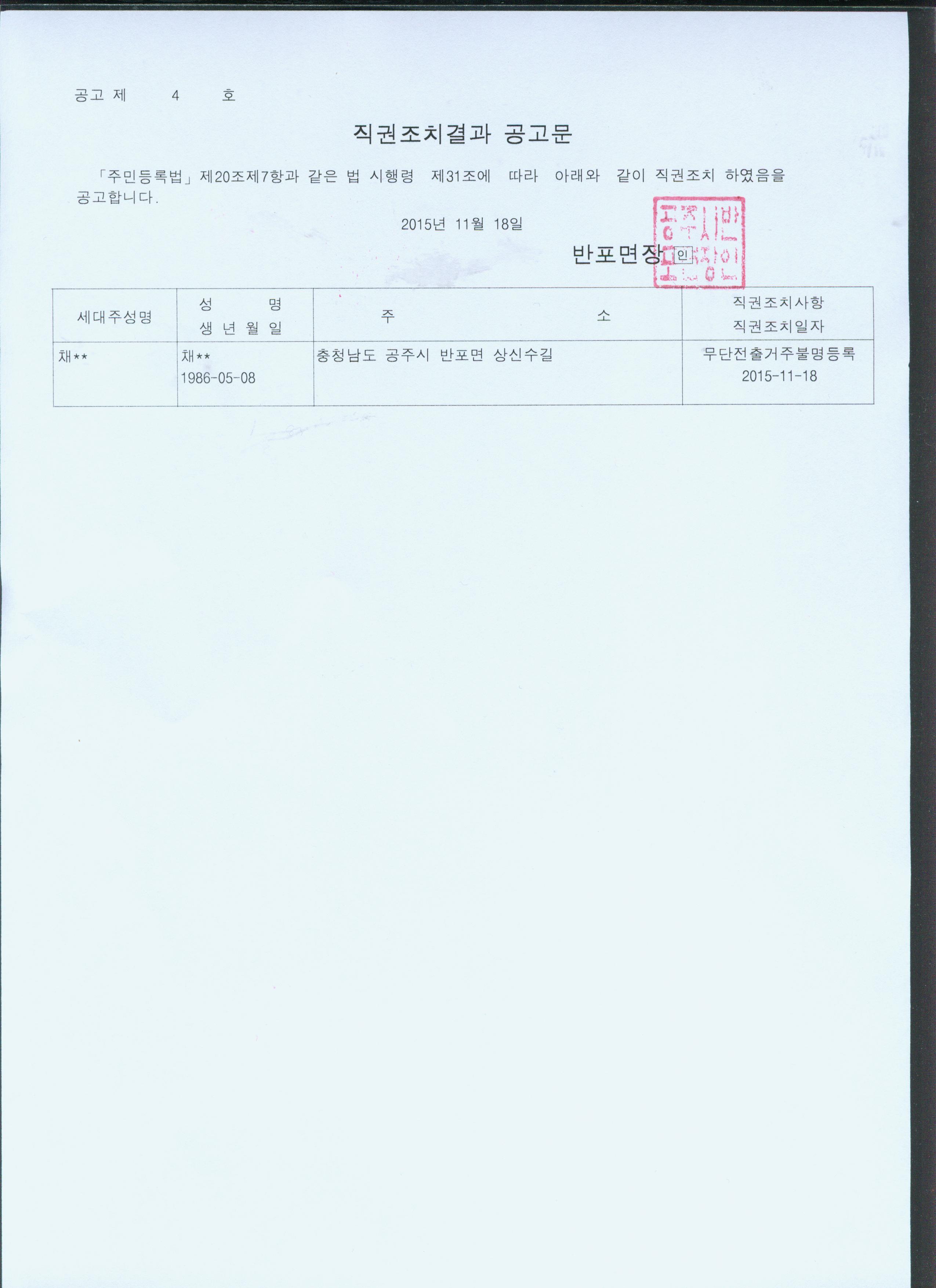 | 2792 | 주민등록 거주불명등록 직권조치 결과 공고 | 반포면 | 962 | 2015-11-18 | 직권조치결과공고문.jpg |
