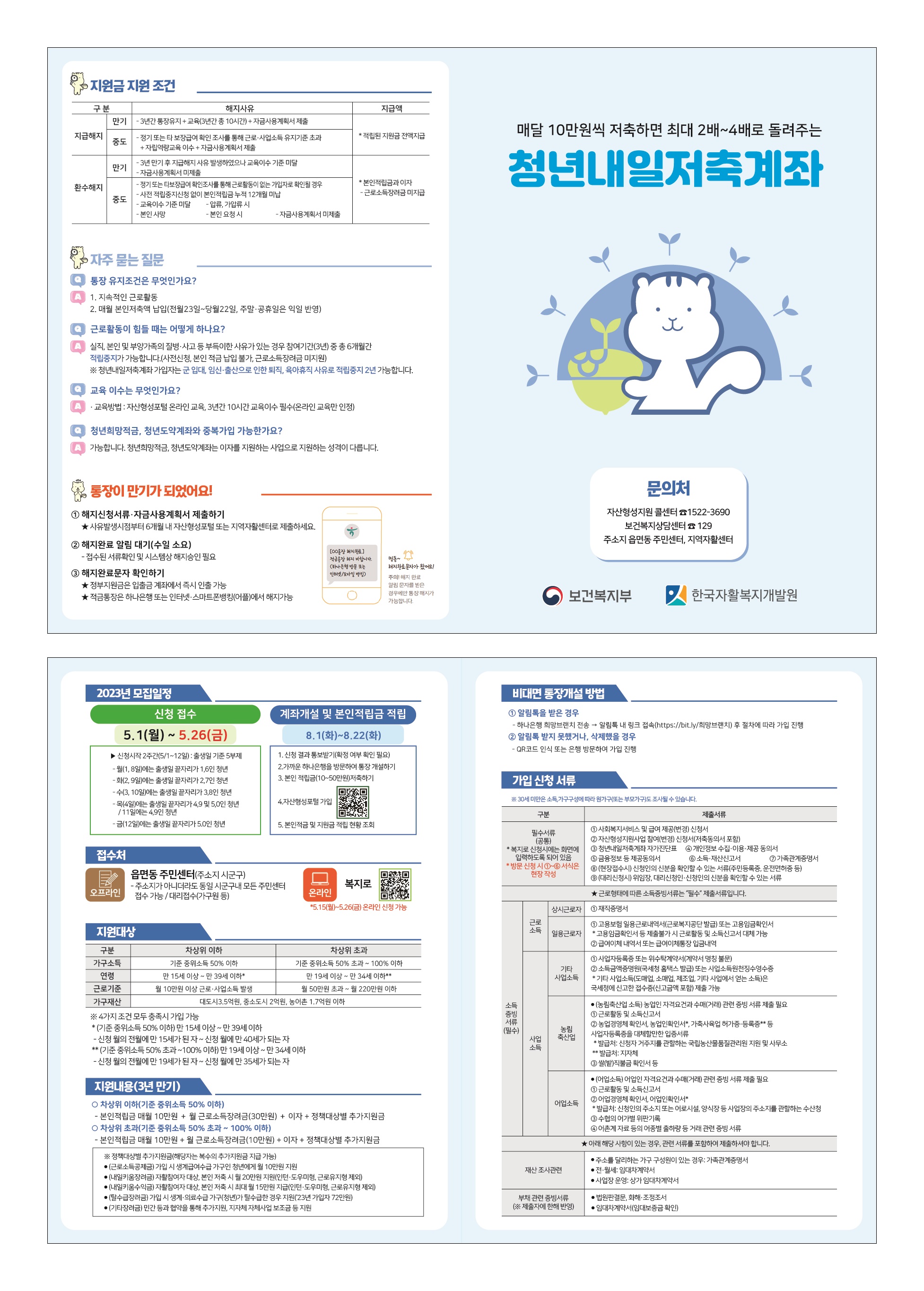 | 11085 | 청년내일저축계좌 신청 안내 | 반포면 | 32 | 2023-05-03 | 청년내일저축계좌리플릿.jpg |