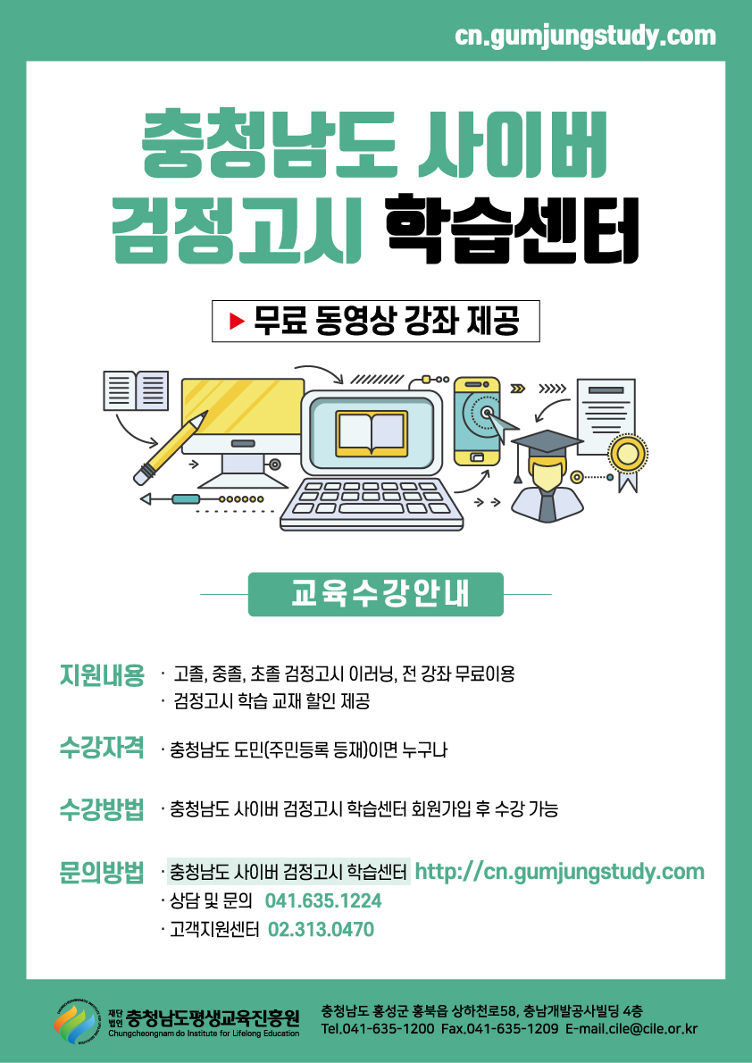 | 168 | 충남 사이버 검정고시 학습센터 무료 이용 안내 | 평생교육과 | 617 | 2019-10-26 | 사이버검정고시01.jpg |